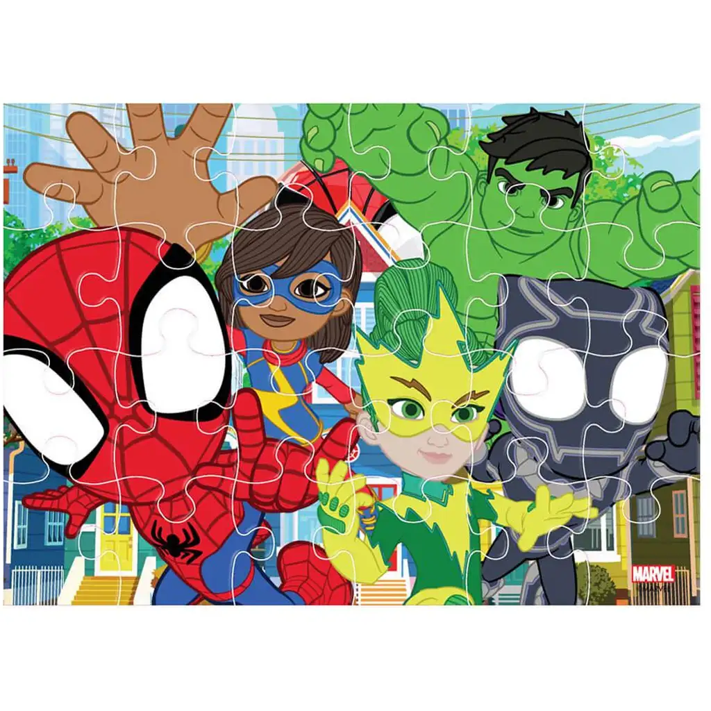 Dieses Set ist ideal für Kinder ab 3 Jahren, die farbenfrohe, fröhliche Grafiken, Superhelden-Abenteuer lieben und gern ihre Lieblingsfiguren puzzeln. Das Puzzlespiel fördert hervorragend die Konzentration, Feinmotorik, Hand-Auge-Koordination und hilft dabei, Geduld und Aufmerksamkeit für Details zu erlernen. Auf den Bildern erscheinen die bekanntesten Marvel-Junior-Charaktere: Spidey, Ghost-Spider, Miles, Ms. Marvel, Hulk, Black Panther und viele andere – so bringt jedes fertige Motiv einen neuen, spannenden Marvel-Moment.