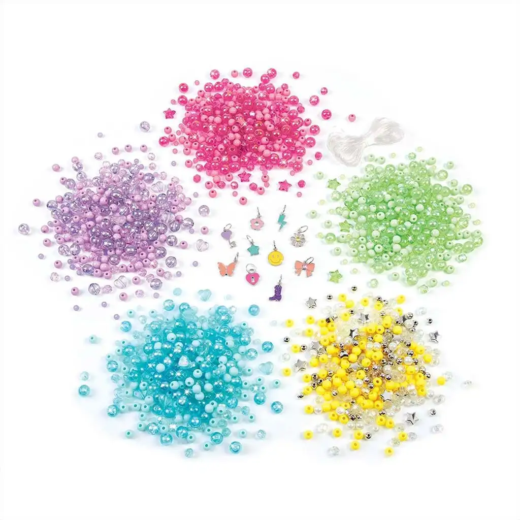 Die Perlen sind in vielen verschiedenen Farben und Größen in der Box enthalten, sodass jede Kombination einzigartig ist. Die beiliegenden, bezaubernden Charms – wie Herzchen, Schmetterlinge oder fröhliche Emojis – machen die Schmuckstücke noch besonderer und verleihen ihnen zusätzlichen Glanz. Die praktische Aufbewahrungsbox mit Fächern sorgt dafür, dass Perlen und Zubehör immer ordentlich verstaut sind, sodass auch nach dem Spielen kein Chaos entsteht.