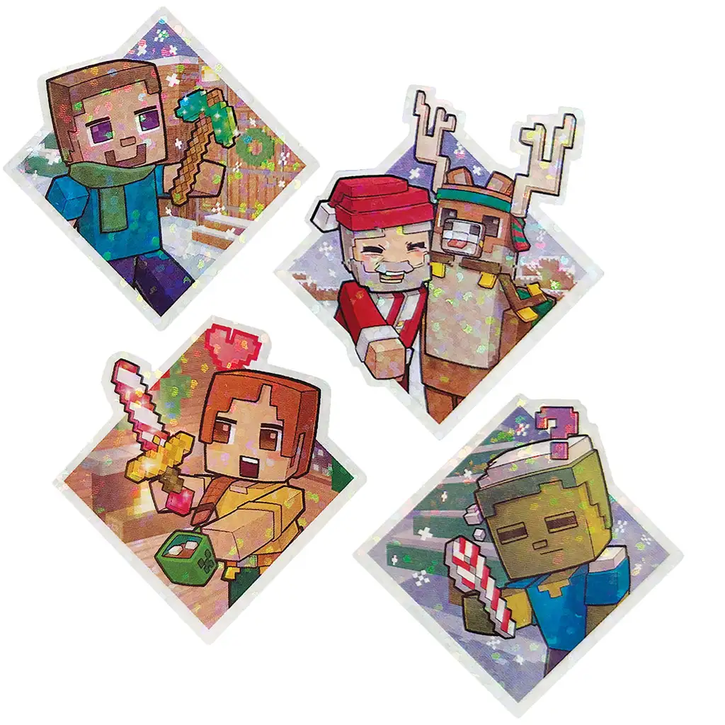 Im Kalender befinden sich 3 Actionfiguren mit einer Höhe von je 8,25 cm: Steve im Weihnachtsmann-Outfit, das lustige Jolly Lama und ein Schneegolem (Snow Golem). Zusätzlich enthält das Set 17 klassische Minecraft-Zubehörteile (wie Waffen, Süßigkeiten, Dekorationen, Gegenstände) und 4 glitzernde Sticker. Die Figuren und Accessoires bringen das ikonische, pixelige Design von Minecraft ins Kinderzimmer, sodass sich die Kinder fühlen können, als wären sie mitten im Spiel.