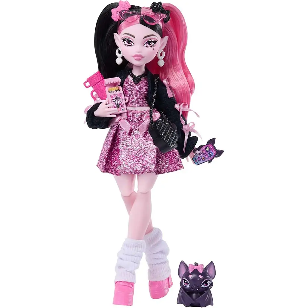 Die Monster High Draculaura Puppe mit Zubehör ist die perfekte Wahl für alle Monster High-Fans, die Mode, einzigartige Charaktere und die leicht gruselige, aber dennoch bezaubernde Welt lieben. Draculaura, das Vampirmädchen, gehört mit ihrem ikonischen Stil und ihrer freundlichen Persönlichkeit zu den beliebtesten Figuren und kommt nun in besonders detailreicher Ausführung mit vielen modischen Extras.