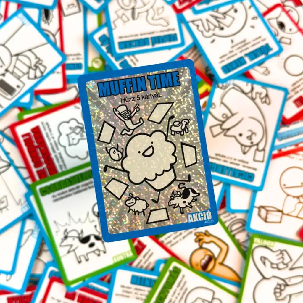 Muffin Time bietet 200 spezielle Karten (darunter eine glänzende, glitzernde Muffin Time-Aktionskarte) und drei verschiedene Kartentypen: Aktion, Konter und Falle. Mit diesen Kombinationen kannst du nicht nur die Pläne der anderen sabotieren, sondern auch überraschende Wendungen ins Spiel bringen – du kannst sogar völlig neue Regeln einführen! Perfekt für Treffen mit Freunden, Familienabende oder wenn ihr einfach mal herzlich lachen wollt.