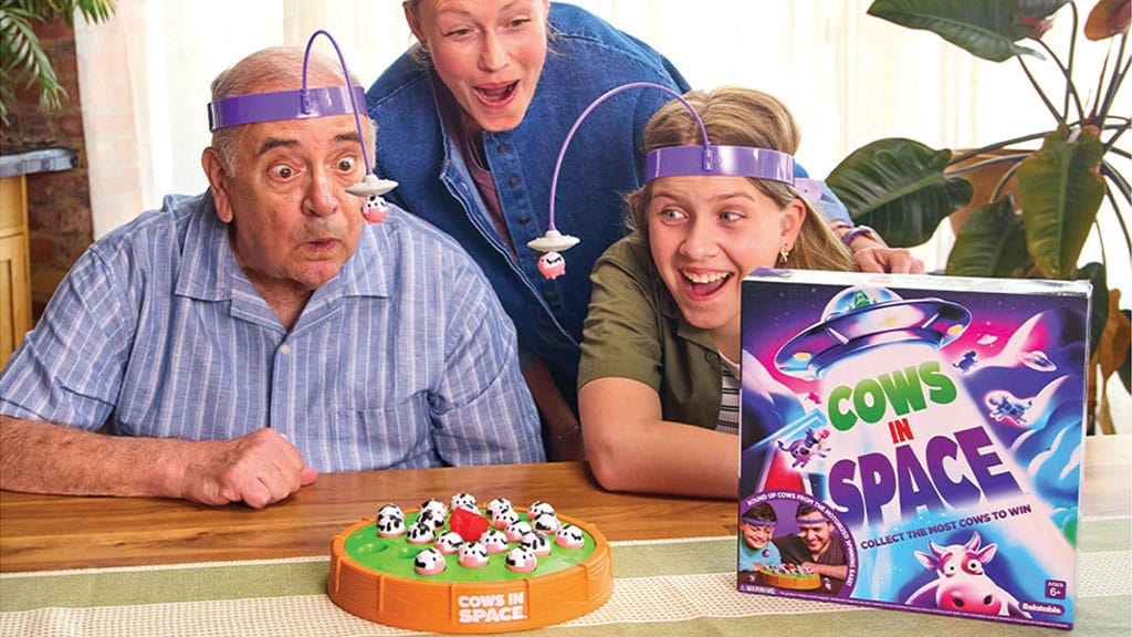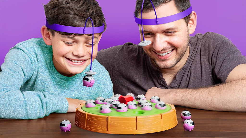 Im Spiel Relatable Cows in Space tragen die Spieler ein Stirnband, an dessen Ende sich ein Raumschiff befindet. Nachdem alle bereit sind und alle Kühe auf dem Spielfeld platziert wurden, muss man einfach das Bauernhaus drücken, um die drehende Plattform zu starten. Das Ziel ist es, mit Hilfe des versteckten Magneten im Raumschiff so viele Kühe wie möglich zu sammeln. Der Spieler, der am Ende des Spiels die meisten Kühe gesammelt hat, gewinnt!Dieses Spiel ist nicht nur unterhaltsam, sondern fördert auch die Geschicklichkeit und Schnelligkeit. Für jedes Familienmitglied stellt es eine spannende Herausforderung dar, während die Spieler darum wetteifern, wer die meisten Kühe fangen kann. Das Relatable Cows in Space ist die perfekte Wahl für Treffen mit Freunden oder Familien-Spieleabende, denn es sorgt garantiert jedes Mal für gute Laune und Lachen.
