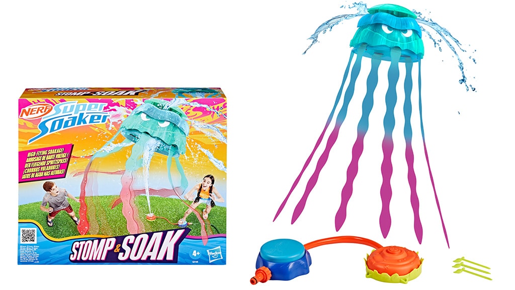Die Super Soaker Stomp & Soak ist speziell für Kinder ab 4 Jahren entwickelt worden. Das Spiel enthält eine Qualle, die mit Hilfe der Abschussrampe in die Luft katapultiert werden kann, wobei aus der Oberseite des Quallenglöckchens Wasserstrahlen versprüht werden. Auch die Tentakel der Qualle spritzen Wasser in alle Richtungen und machen das Spiel dadurch noch spannender. Schließe einfach die Abschussrampe an einen funktionierenden Gartenschlauch an, und die Super Soaker Stomp & Soak sorgt sofort für Spaß! Dieses Spiel ist die perfekte Wahl für sommerliche Wasserschlachten und garantiert ein Highlight auf Gartenpartys oder Familienfeiern.