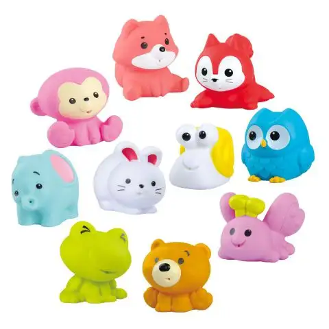 Von nun an wird das Baden für die Kinder viel mehr Spaß machen mit diesem fantastischen weichen spritzenden Waldtiere-Set mit 10 Stück. In der Packung befinden sich insgesamt 10 fröhliche Tierchen, die alle Wasser spritzen können, wenn man sie in die Badewanne taucht und sie damit aufsaugen lässt. In der Packung finden wir das Eichhörnchen, den Bären, den Fuchs, das Kaninchen, den Schmetterling, den Affen, den Elefanten, die Eule, den Frosch und die Schnecke. Die Tierchen kommen in einem praktischen, durchsichtigen, zylinderförmigen Behälter.