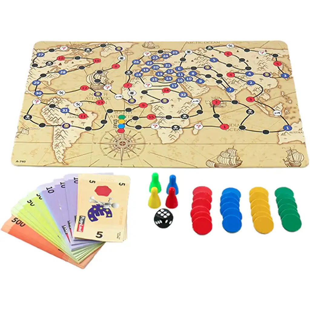 Farbiges Weltkarten-Spielbrett und Zubehör