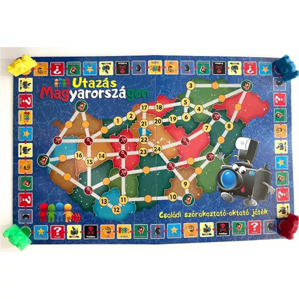 Das farbenfrohe Spielbrett zeigt die Landkarte Ungarns, mit verschiedenen Routen und Stationen, auf denen die Spieler reisen können. Während des Fortschritts helfen Fragekarten beim Wissenserwerb – insgesamt warten 60 Fragen und 240 Antworten auf die Spieler, was garantiert, dass jede Runde spannend und einzigartig ist. Die Themen sind vielfältig: Geografie, Sehenswürdigkeiten, Traditionen, berühmte Persönlichkeiten und viele weitere interessante Fakten kommen vor.