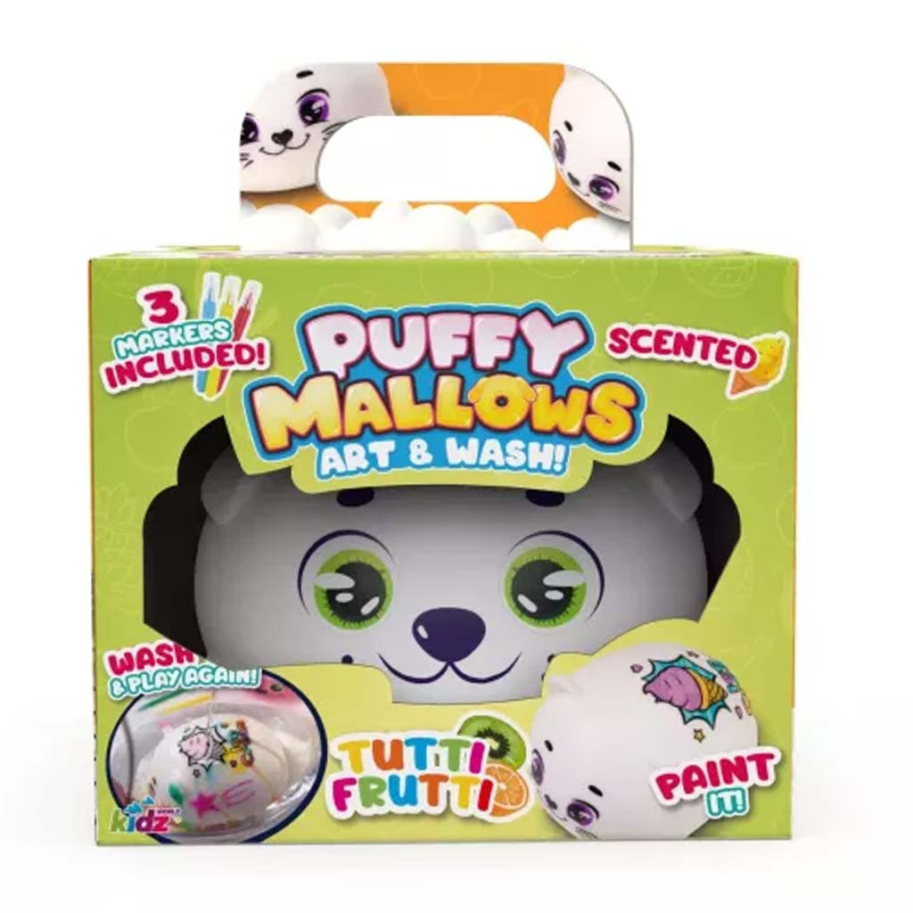 Lerne das süßeste Mitglied der Puffy Mallows Kollektion kennen: das weiße, tutti-frutti-duftende, knuffige Marshmallow-Tierchen! Diese bezaubernde, weiche Figur begeistert Kinder nicht nur durch ihr niedliches Aussehen, sondern birgt auch kreative Möglichkeiten – denn man kann sie bemalen, wieder abwaschen und von vorne beginnen! Eine Welt voller regenbogenbunter Ideen eröffnet sich, in der jedes Kind ein kleiner Künstler werden kann.