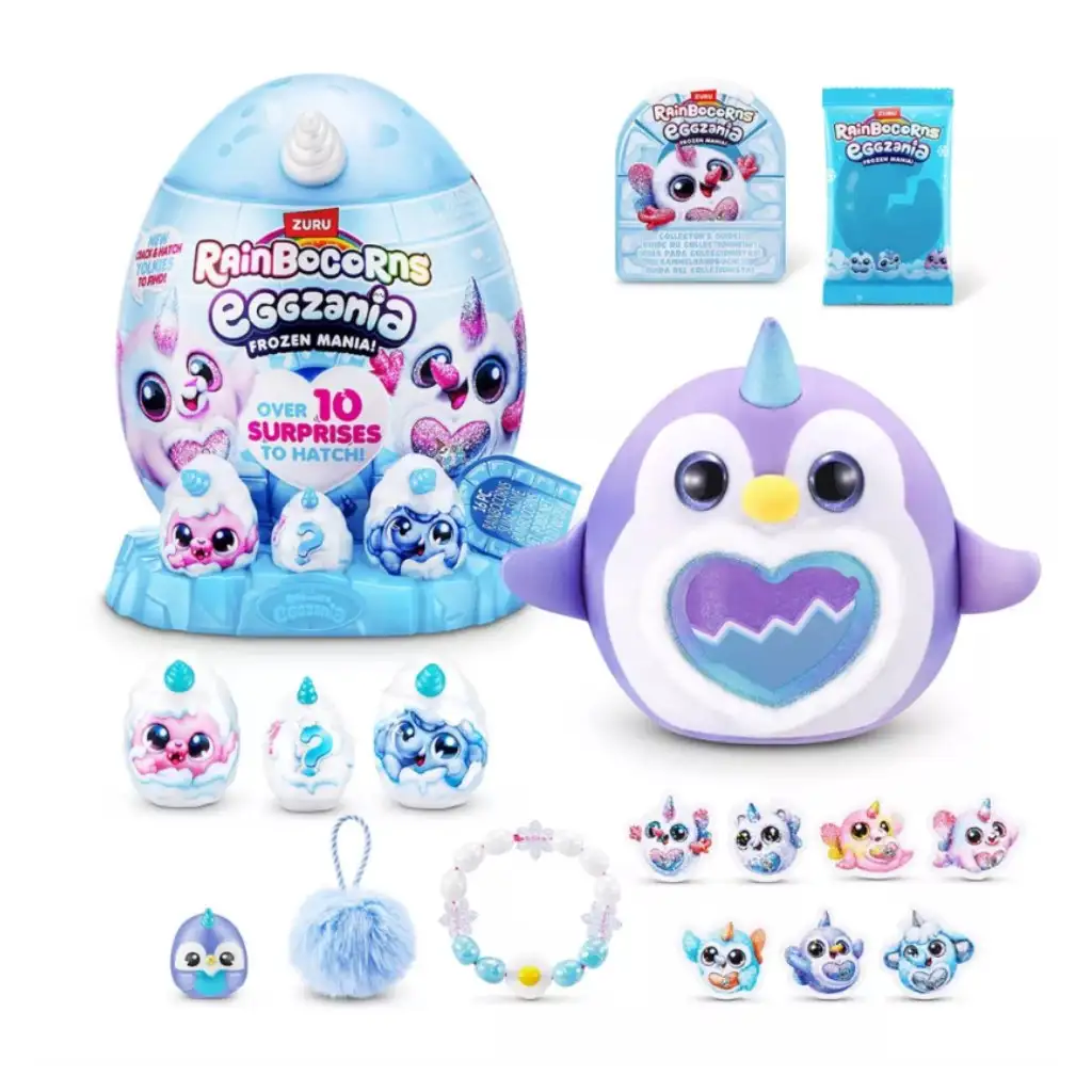 Das Rainbocorns Eggzania Frozen Mania Überraschungs-Ei zaubert garantiert bei jedem Auspacken ein Lächeln ins Gesicht. Im großen Ei befindet sich ein weiches, niedliches Plüschtier, daneben verbergen sich weitere kleine Eier, die voller spannender Überraschungen stecken. Zu den Zubehörteilen gehören sammelbare Minifiguren, Schmuckbastel-Elemente und kleine Spielzeuge, die das Erlebnis noch verstärken.