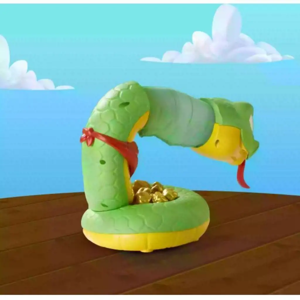Das Schlangenabenteuer ist ein spannendes und unterhaltsames Brettspiel, bei dem die Spieler als Goldgräber versuchen, dem Schatz der Schlange zu entwenden. Das Ziel ist es, so viele Goldnuggets wie möglich zu sammeln, aber Vorsicht, denn die Schlange kann den Schatzsucher gelegentlich beißen! Wenn dies passiert, muss der Spieler die Hälfte seines Goldes an die Schlange zurückgeben. Aufgrund der einfachen Spielregeln können auch jüngere Kinder leicht mitspielen, aber der schnelle, rasante Ablauf und die Aufregung, den Schatz zu erlangen, bieten der ganzen Familie großen Spaß.