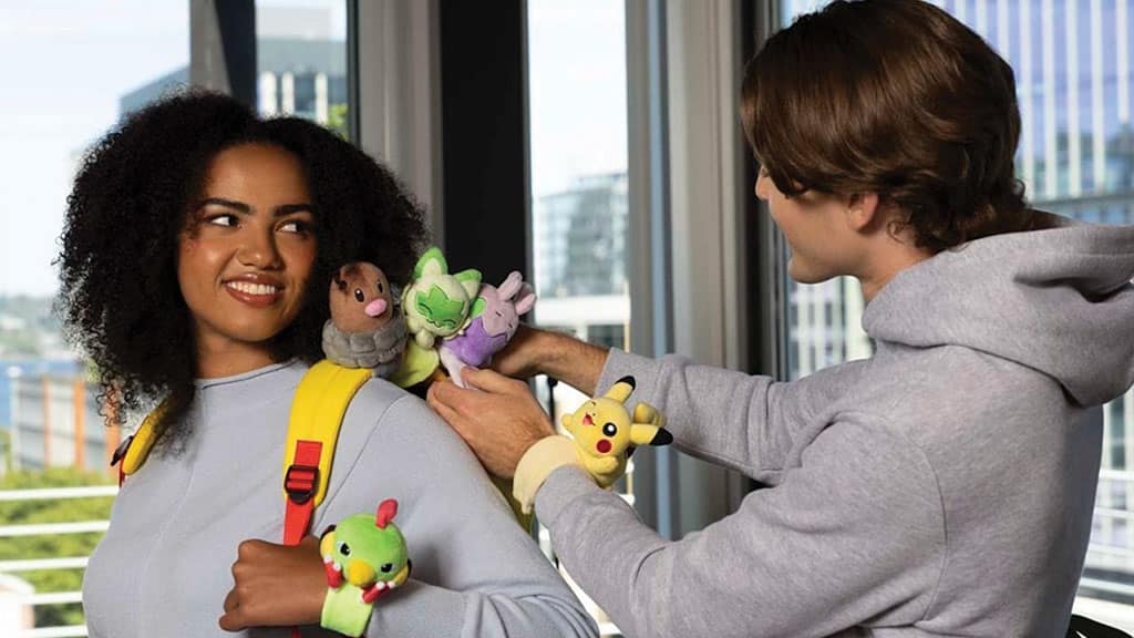 Begeisterte Trainer können ab sofort ihre Pokémon auf jedes Abenteuer mitnehmen – mit der Pokémon Shoulder Plush! Kinder können diese Plüschfiguren ganz einfach an einem Taschengurt, am Handgelenk oder überall sonst befestigen, sodass ihr Lieblings-Pokémon immer bei ihnen ist.