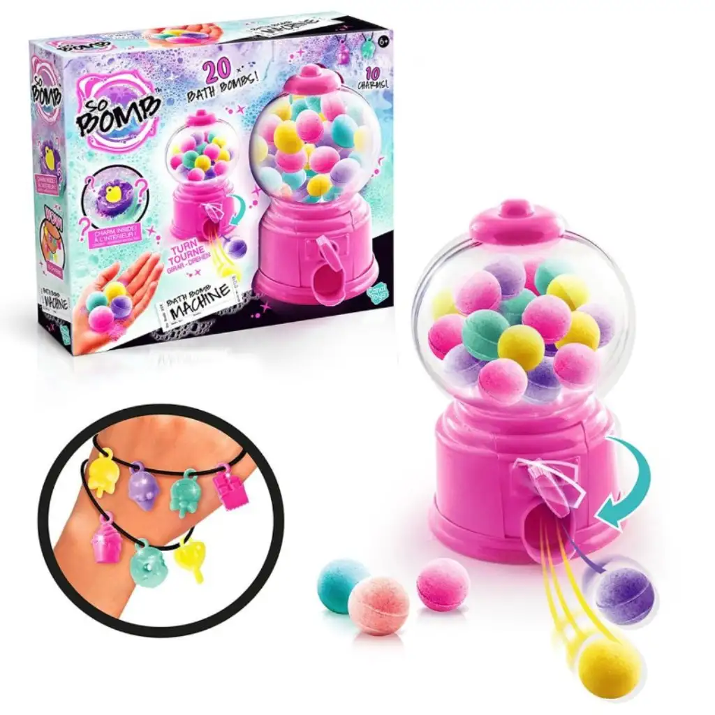 Die So Bomb Badebombe im Kugelspender ist eine fantastische Wahl, wenn du das Baden zu einem besonderen Erlebnis machen möchtest! Die bunten, sprudelnden und duftenden Badebomben schaffen eine echte Wellness-Atmosphäre, die Kinder sicher lieben werden. Das Set enthält 20 Badebomben, von denen 10 Überraschungs-Charms verbergen. Diese zauberhaften kleinen Anhänger haben die Form verschiedener Lieblingssüßigkeiten wie Eis, Donut, Lutscher oder Schokolade und können an einer Kette oder einem Armband getragen werden. Der aufregende Kugelspender ist leicht nachfüllbar, sodass der Spaß jederzeit weitergehen kann! Das So Bomb Badebomben-Set ist nicht nur unterhaltsam, sondern bietet auch kreative und entspannende Freizeitbeschäftigung und ist ein ideales Geschenk ab 6 Jahren.