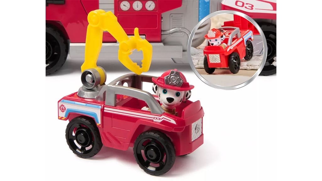 Die ausziehbare Leiter ist um volle 360 Grad drehbar und kann für ein schnelles Nachladen abgesenkt werden, während Lichter und Geräusche das Spiel noch spannender machen und den Kindern helfen, sich in das Abenteuer hineinzuversetzen. Das Set enthält eine Marshall-Figur, ein verstecktes Mini-Fahrzeug sowie 10 Wasserprojektile, die alle bequem auf der Ladefläche des Feuerwehrautos Platz finden.