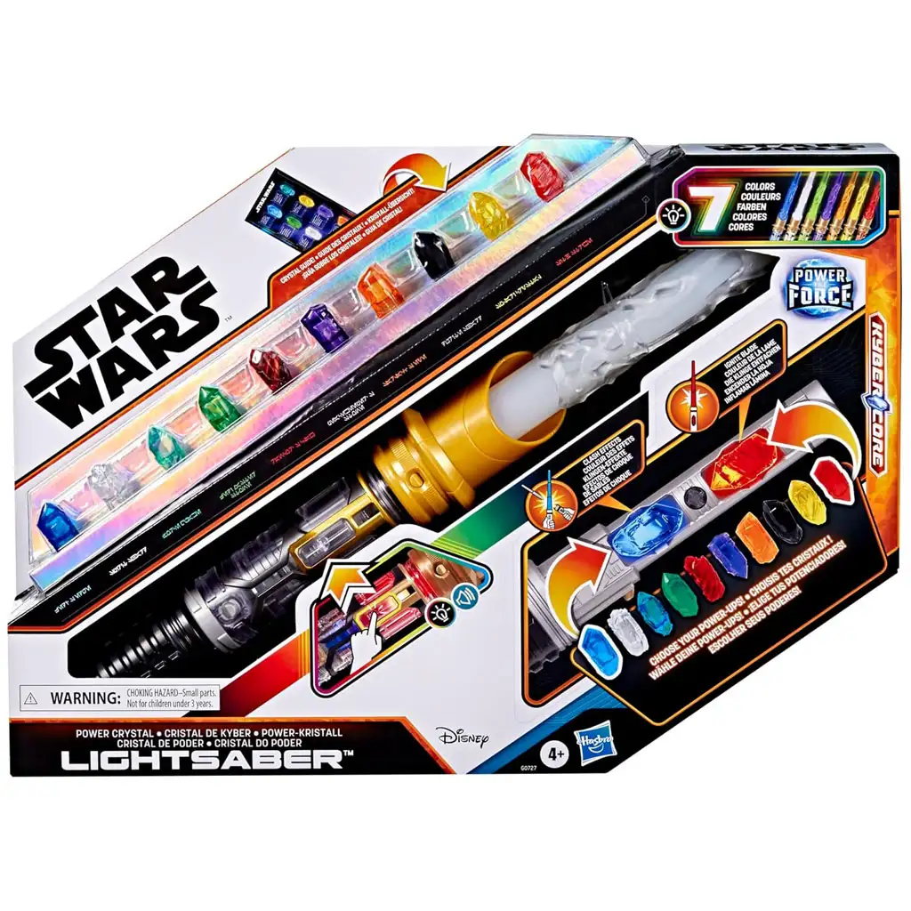 Die Kinder können zwei Kristalle in den Griff einsetzen – einer bestimmt die Farbe der Klinge, der andere die des Griffs. Beim Einsetzen der Kristalle leuchtet das Lichtschwert und gibt passende Geräusche von sich, was das Spiel noch realistischer macht. Das Set enthält eine ausziehbare, leuchtende Klinge, einen Kraftblitz-Effekt, eine Endkappe, eine Griffverkleidung und eine elektronische Zentraleinheit – damit können Kinder ihr ganz eigenes, einzigartiges Lichtschwert zusammenbauen. Im integrierten Kristallhaltersystem hat jeder Kristall seinen eigenen Platz, und die beiliegende Anleitung erklärt, welche Macht im jeweiligen Kristall im Universum steckt.