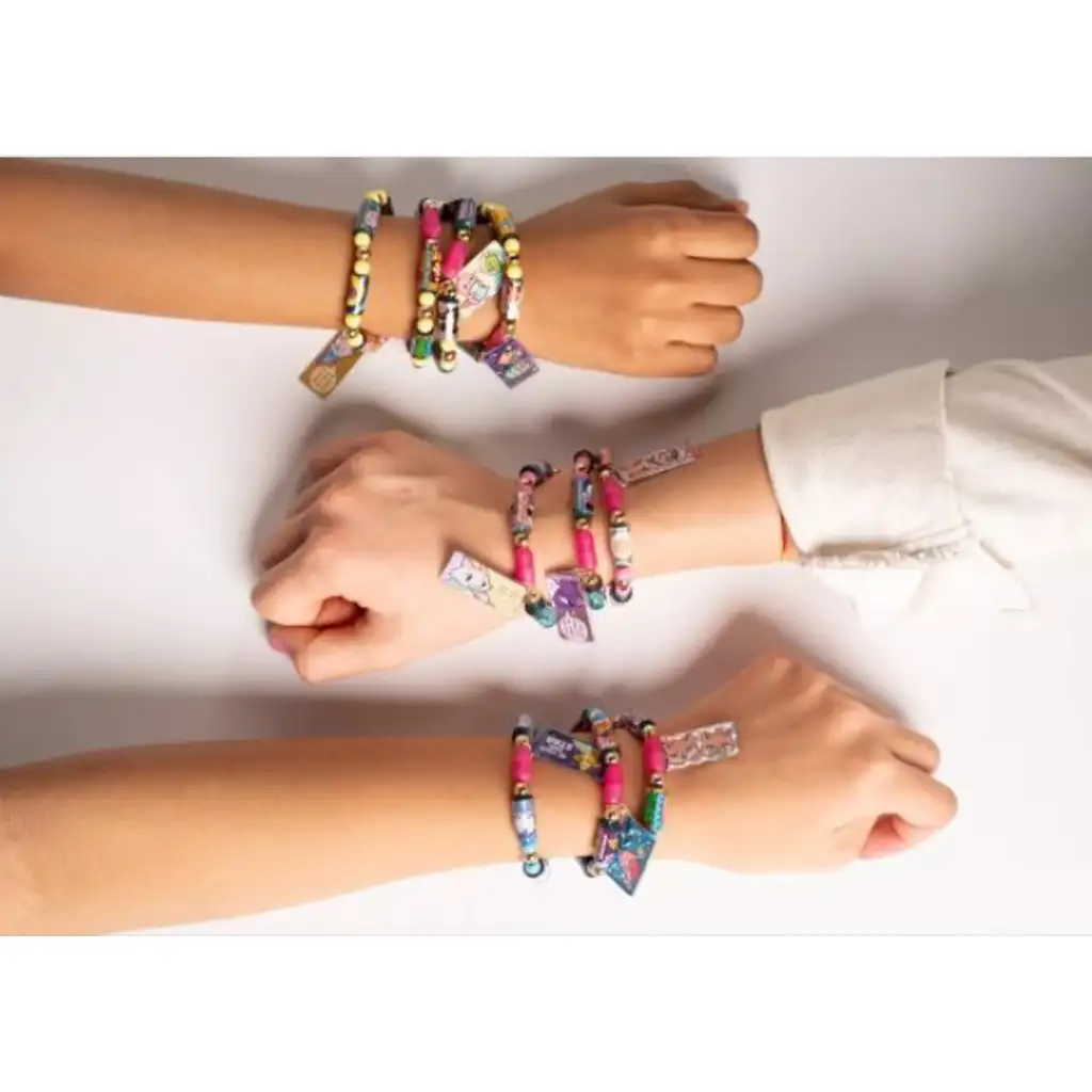 Das Set ermöglicht es den Kindern, 6 Armbänder und 2 Halsketten herzustellen, sodass sie nicht nur sich selbst schmücken, sondern auch besondere Schmuckstücke mit ihren Freunden teilen können. Die Aufkleber sind leicht ablösbar und wiederverwendbar, sodass jederzeit ein neuer Stil kreiert werden kann.