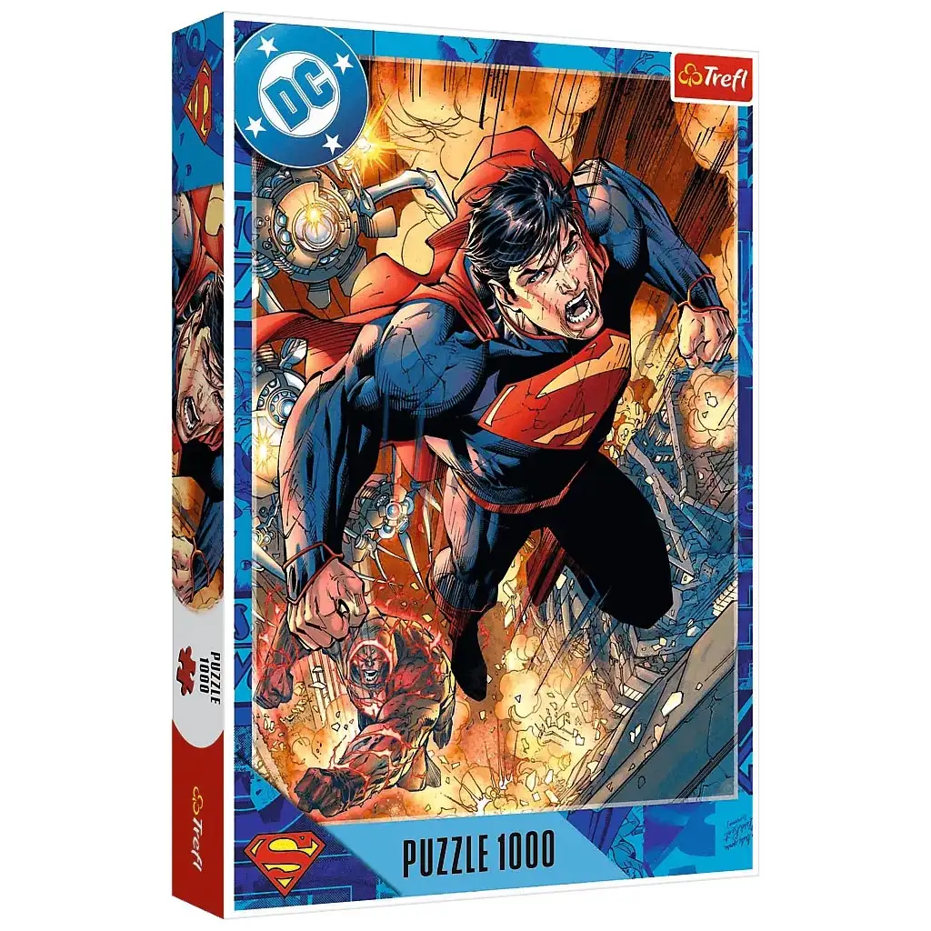 Dieses 1000-teilige Puzzle von Trefl ist ein echtes Highlight für Comic-Fans, denn es zeigt den legendären Superman in klassischer, dynamischer Comic-Grafik. Im Mittelpunkt der Szene steht Superman, wie er im Kampf gegen seine Gegner alles durchbricht, was sich ihm in den Weg stellt. Kraft, Mut und Heldentum werden auf diesem beeindruckenden Bild greifbar, das die Essenz des DC-Universums festhält.