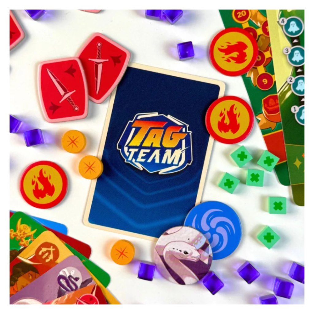 Tag Team Gesellschaftsspiel – ein schnelles, zweispieleriges Deckbauspiel mit Arenakampf, bei dem ihr Teams aus zwei Kämpfern zusammenstellt und mit einer vorab geplanten Taktik einen spektakulären, selbst laufenden Kampf durchführt. Die Atmosphäre des Spiels erinnert an ein Comicturnier: 12 Kämpfer mit unterschiedlichen Stilen und Fähigkeiten warten darauf, von euch kombiniert zu werden, und die aus eurem eigenen Deck ausgespielten Karten bestimmen, welche Angriffe, Verteidigungen und verheerenden Kombos in der Arena aufeinanderfolgen.