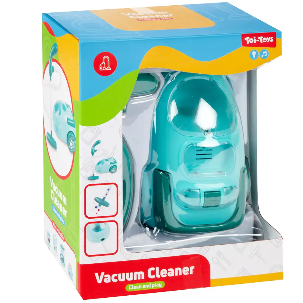 Türkisfarbener Staubsauger mit Ton- und Lichteffekten.Türkisfarbener Staubsauger mit Ton- und Lichteffekten.