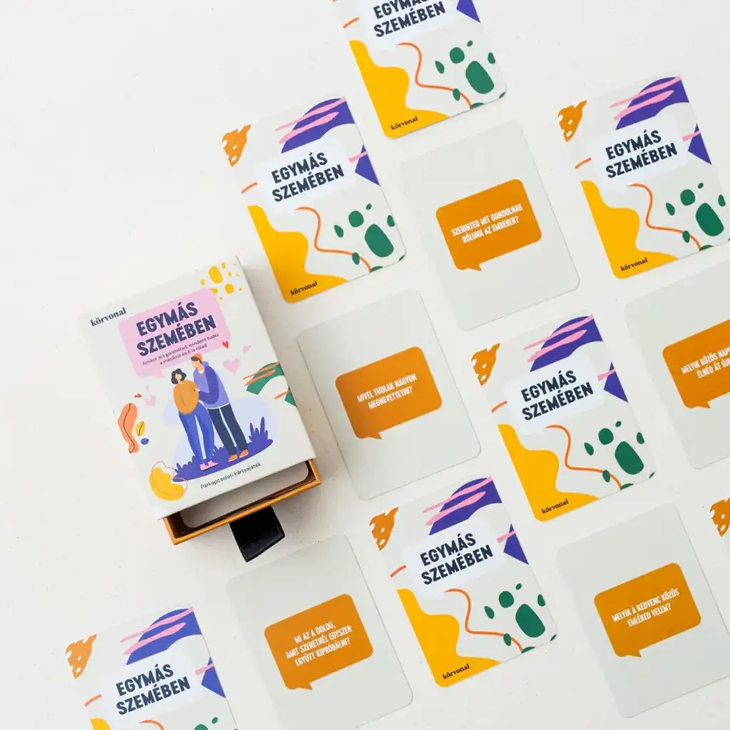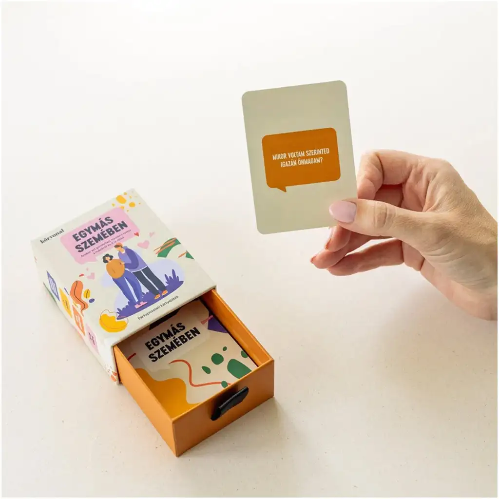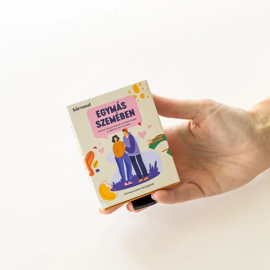 Körvonal – In den Augen des Anderen ist ein Beziehungskartenspiel, das dabei hilft, den Partner neu zu entdecken – selbst dann, wenn ihr das Gefühl habt, schon alles voneinander zu wissen. Dieses Spiel unterstützt euch dabei, eure Beziehung zu vertiefen, euch füreinander zu öffnen und auf Fragen zu antworten, die im hektischen Alltag nur selten gestellt werden. Es ist die ideale Wahl für Paare, die sich näherkommen und mehr über die Gefühle, Gedanken und Erinnerungen des anderen erfahren möchten.