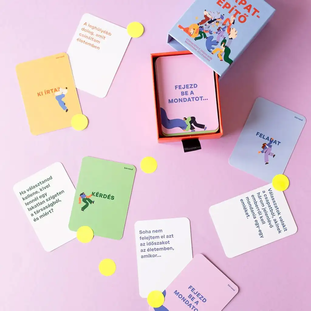 Körvonal – Team-Building ist ein dynamisches und kreatives Gesellschaftsspiel, das dazu beiträgt, Freundesgruppen, Kolleginnen und Kollegen oder jede andere Gemeinschaft einander näherzubringen. Dieses Spiel ist nicht nur unterhaltsam, sondern schafft mit Hilfe von Humor, Verspieltheit und ehrlichen Äußerungen auch echte Verbindungen. Ob bei Firmenveranstaltungen, Trainings, Freundestreffen oder sogar Schulprogrammen – das Team-Building-Kartenspiel regt garantiert Gespräche und gemeinsames Nachdenken an.