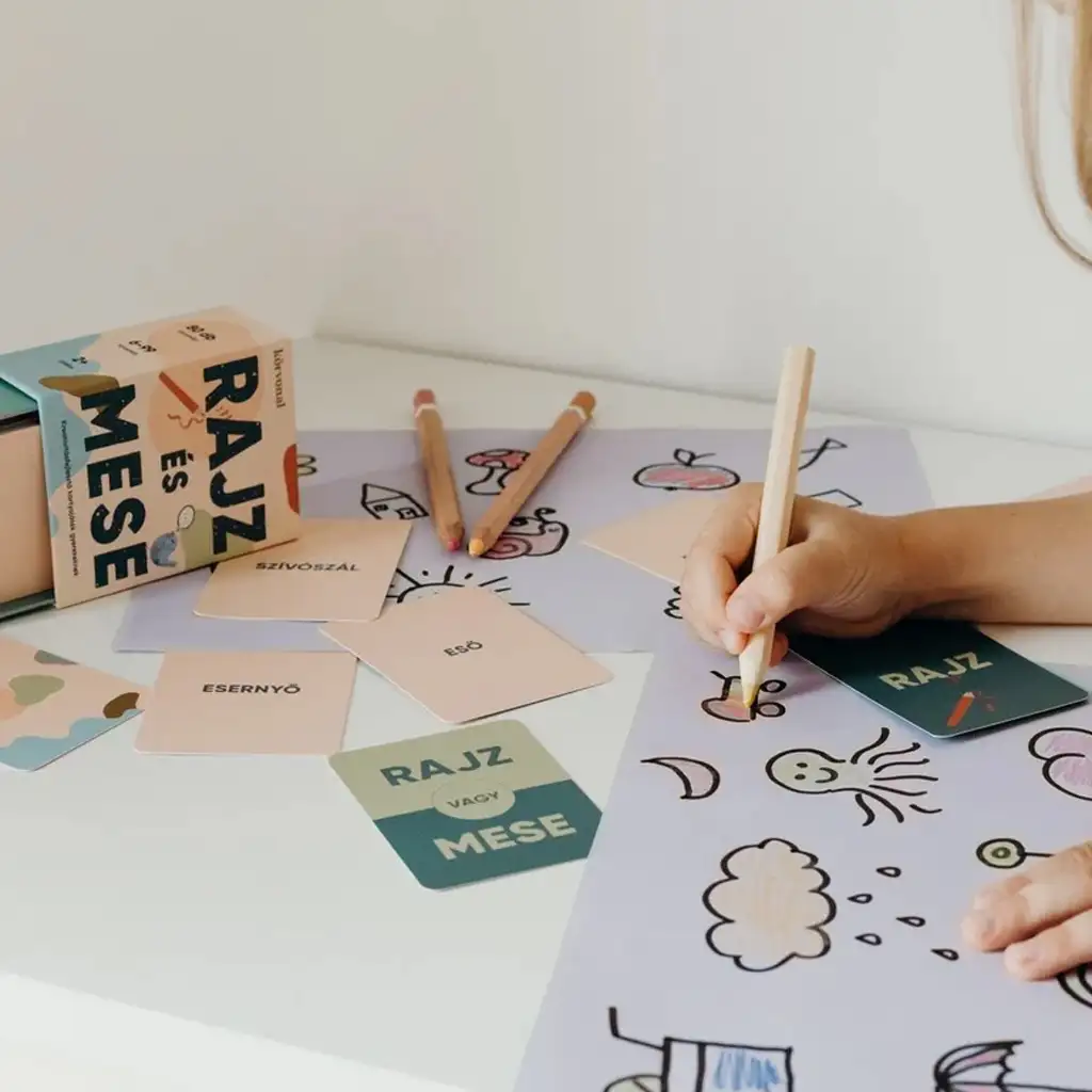 Körvonal – Zeichnen und Erzählen ist ein farbenfrohes, spielerisches und erlebnisreiches Kreativitätsförderungs-Kartenspiel, das speziell für Kinder entwickelt wurde. Ziel des Spiels ist es, die Fantasie, den Wortschatz und die Ausdrucksfähigkeit der Kleinen gleichzeitig zu fördern – und das alles durch Zeichnen, Erzählen und jede Menge Lachen. Es ist die perfekte Wahl für Zuhause, den Kindergarten, die Schule oder auch für längere Reisen, wenn eine kreative, bildschirmfreie Beschäftigung gefragt ist.
