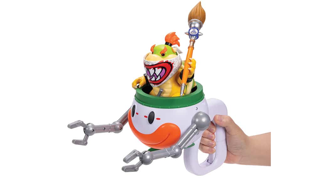 Bring mehr Spaß ins Spiel mit dieser Bowser Jr. Actionfigur! Dieses kleine Ungeheuer trägt jetzt eine brandneue Maske und rast in seinem berühmten Clown Car herum, das mit einem rotierenden Propeller, einem abnehmbaren Griff und auf Knopfdruck beweglichen Schlagarmen ausgestattet ist. Das Set enthält außerdem ein Stickerbogen mit wasseraktivierbaren Aufklebern sowie einen Schaumstoffpinsel, um das Spielerlebnis noch kreativer zu gestalten. Diese besondere Edition ist eine spannende und unterhaltsame Ergänzung für jede Super Mario Sammlung und begeistert alle Fans!