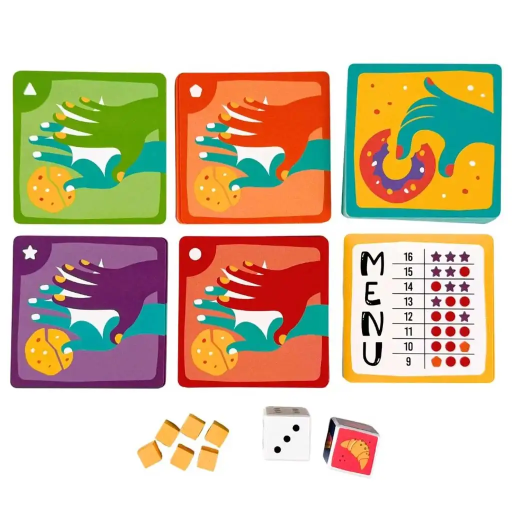 El a kekszekkel! ist ein wirklich rasantes und fröhliches Reaktions-Brettspiel, das garantiert jede Familien- oder Freundespielrunde aufpeppt. Der Geschichte nach lockt der unwiderstehliche Duft frisch gebackener Backwaren alle in die Bäckerei, aber nur der Schnellste mit dem schärfsten Auge kann gewinnen. Während des Spiels bestimmen zwei Würfel, auf welche Karte man schlagen muss, aber die Aufgabe bleibt keineswegs so einfach. Im Verlauf des Spiels treten immer mehr Regeln und Einschränkungen in Kraft, die ständige Aufmerksamkeit und schnelle Entscheidungen erfordern. Manchmal zählt die Farbe des Gebäcks, manchmal die Form oder gerade die Karten, die nicht berührt werden dürfen. Dank des anpassbaren Schwierigkeitsgrades können Kleinere und Größere gemeinsam spielen, sodass jede Altersgruppe spannende Herausforderungen findet. Wenn du möchtest, dass dein Kind beim Spielen seine Reaktionszeit und Konzentration verbessert, ist dieses Spiel ein Volltreffer.
