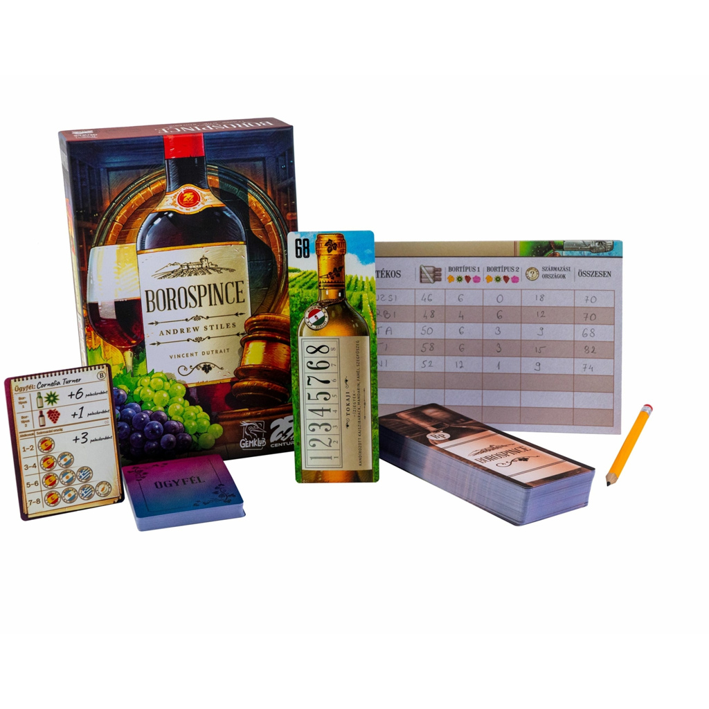 Das stimmungsvolle, strategische Kartenspiel „Borospince“ lädt dich ein, zusammen mit deinem Kind einen eigenen Weinkeller aufzubauen – doch entscheidend ist die Reihenfolge, in der die Flaschen ihren Platz einnehmen! Die wunderschönen Illustrationen und das besondere Thema ziehen sofort in ihren Bann, während das Spiel ständig neue Entscheidungen verlangt. Ihr müsst gleichzeitig die Auktionen, die Züge der Gegner und die Wünsche der Kunden im Blick behalten, sodass jede Partie spannend und abwechslungsreich bleibt.