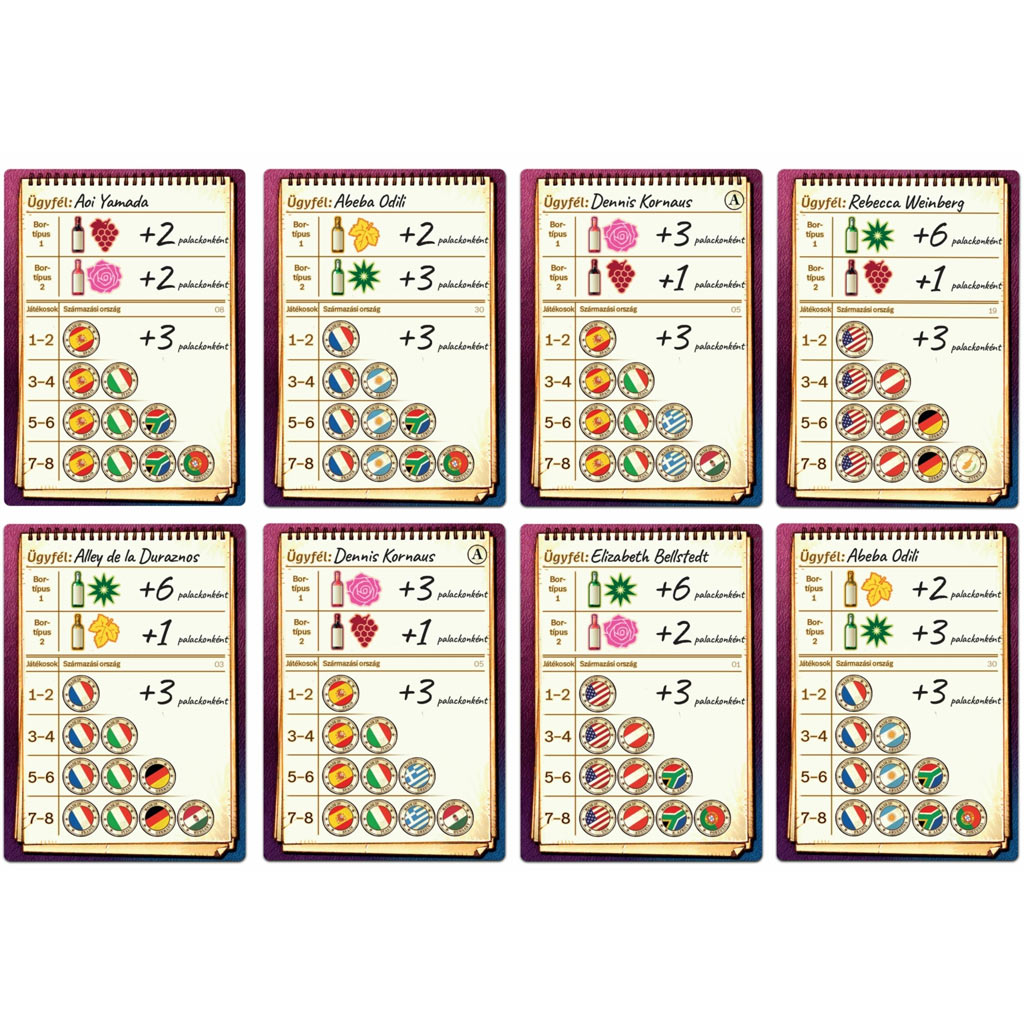 Bei der Wertung zählt nicht nur, welche Weine du gesammelt hast, sondern auch, wie gut sie den Anforderungen auf deiner Kundenkarte entsprechen. Bestimmte Weinregionen, Farben oder Sorten bringen Extrapunkte, deshalb lohnt es sich, vorauszuplanen und deinen Keller taktisch aufzubauen. Am Ende gewinnt, wer die meisten Punkte durch gut getimte Gebote und einen clever aufgebauten Weinkeller erzielt.