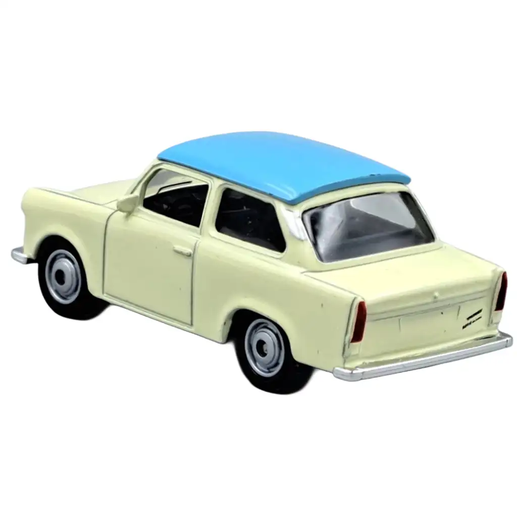 Das Trabant 601 Modellauto von Welly ist ein echtes Highlight für alle kleinen Auto-Fans und nostalgischen Eltern! Dieses Metallmodell im Maßstab 1:64 ist eine originalgetreue Nachbildung des berühmten ostdeutschen Fahrzeugs, das nun mit eleganter weißer Karosserie und hellblauem Dach zurückkehrt – ein echter Klassiker in modernem Gewand.